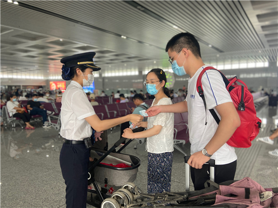 據(jù)了解,周口東站結(jié)合客流情況優(yōu)化客流疏導(dǎo)舉措,在進(jìn)站口、檢票口、站臺(tái)關(guān)鍵位置加派黨員先鋒隊(duì)和團(tuán)員先鋒隊(duì)保障、強(qiáng)化現(xiàn)場(chǎng)指引,確??瓦\(yùn)進(jìn)站安全、有序、可控。針對(duì)暑期高溫多雨天氣,服務(wù)臺(tái)實(shí)時(shí)監(jiān)測(cè)站內(nèi)溫度,在做好節(jié)支降耗的同時(shí)切實(shí)保證乘客候乘環(huán)境。車(chē)站增設(shè)“暑運(yùn)愛(ài)心便民箱”,為乘客提供防暑降溫用品、口罩、藥箱等便民物品。同時(shí),為老弱病幼殘等重點(diǎn)旅客提供“愛(ài)心卡”,為行動(dòng)不便或行李較多、帶兒童較多的乘客提供貼心幫助。