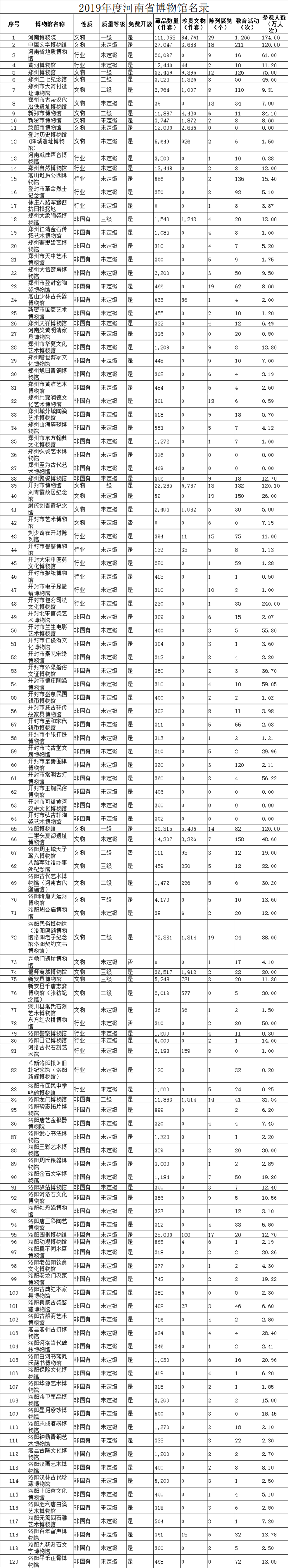 日前,《2019年度河南省博物館名錄》(以下簡稱《名錄》)對外公布。根據(jù)《名錄》,截至2019年底,河南省共有348家博物館,年接待觀眾達7174萬人次。周口市及下轄縣、區(qū)收入《名錄》博物館18家,年接待觀眾472.14萬人次。