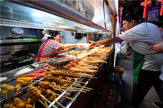 為了維護好夜市經(jīng)營秩序,開發(fā)區(qū)城管、轄區(qū)辦事處、市場監(jiān)管分局等6個部門派出工作人員,在現(xiàn)場值班,結(jié)合各自工作職能,發(fā)現(xiàn)問題現(xiàn)場解決。記者采訪時,開發(fā)區(qū)太昊路辦事處工作人員楊希在夜市門前值班,負責維持門前秩序。他告訴記者,在南廣場夜市經(jīng)營的商販們大多是附近村莊的居民,夜市攤位是很多家庭的主要收入來源?!叭缃?,區(qū)里為他們劃定了經(jīng)營地點,不僅便于管理,同時隨著夜市名氣提升,也為他們帶來了更多收入。”楊希說。城管隊員康壯壯告訴記者,自從把商戶集中在一起后,難題迎刃而解,夜市的經(jīng)營秩序和衛(wèi)生環(huán)境都得到了良好改善,城管隊員們的辛苦努力收到了明顯成效。①6