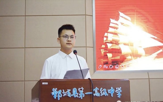 在發(fā)言環(huán)節(jié),2020屆優(yōu)秀畢業(yè)生代表、考入清華大學(xué)的宋帥,在校生代表、三(32)班學(xué)生仵家豪,家長代表、考入北京大學(xué)的張玨的父親張衛(wèi)東,教師代表、2020屆高三教師靳亭分別作了發(fā)言。