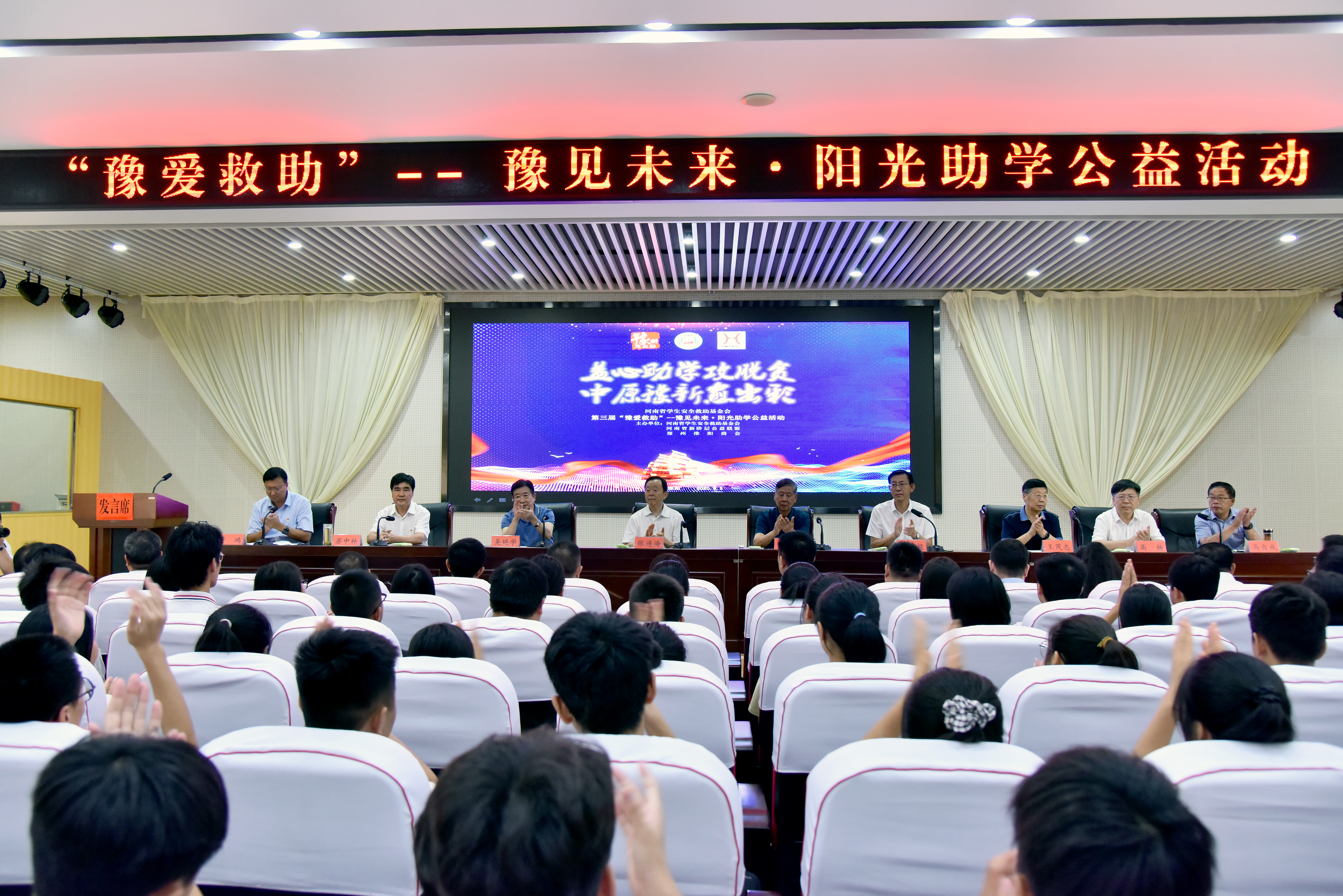 9月5日,河南省學(xué)生安全救助基金會(huì)、河南省新階層公益聯(lián)盟、鄭州淮陽(yáng)商會(huì)共同 主辦的第三屆“豫愛救助”—豫見未來(lái)·陽(yáng)光助學(xué)公益活動(dòng)在區(qū)教體局9樓會(huì)議室舉行,30名貧困大學(xué)生獲15萬(wàn) 元助學(xué)金。
