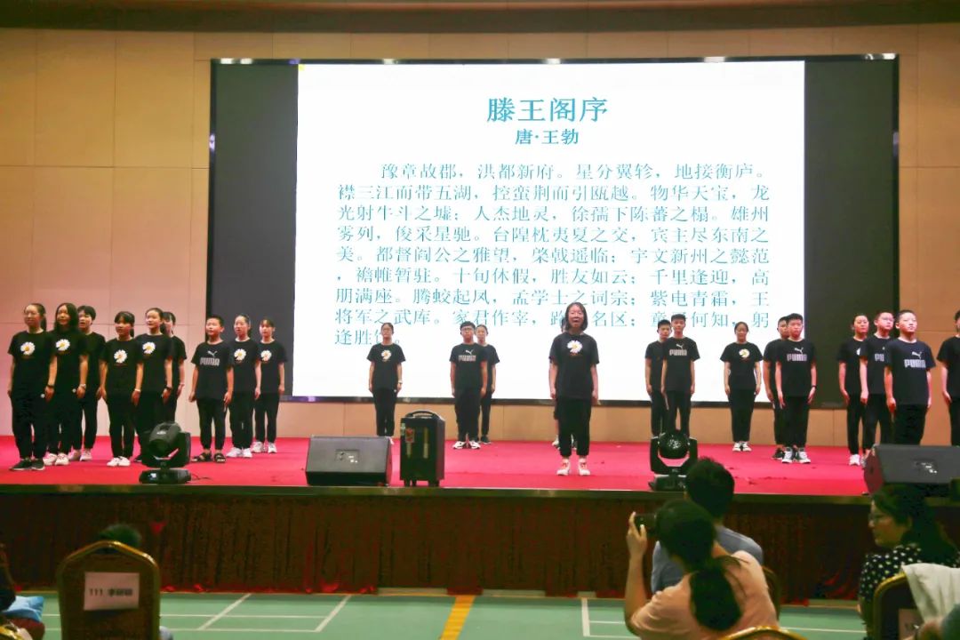 接著,國際班學(xué)生帶來了有趣的接龍方式——國學(xué)誦讀表演。他們熟記熟背,朗朗上口。幾十人的團隊,或領(lǐng)頌,或齊頌,或輪頌,高低起伏,抑揚頓挫,鏗鏘有力。顯示了識記技巧和老師教學(xué)古典誦讀的良苦用心,展示了新星學(xué)校扎實