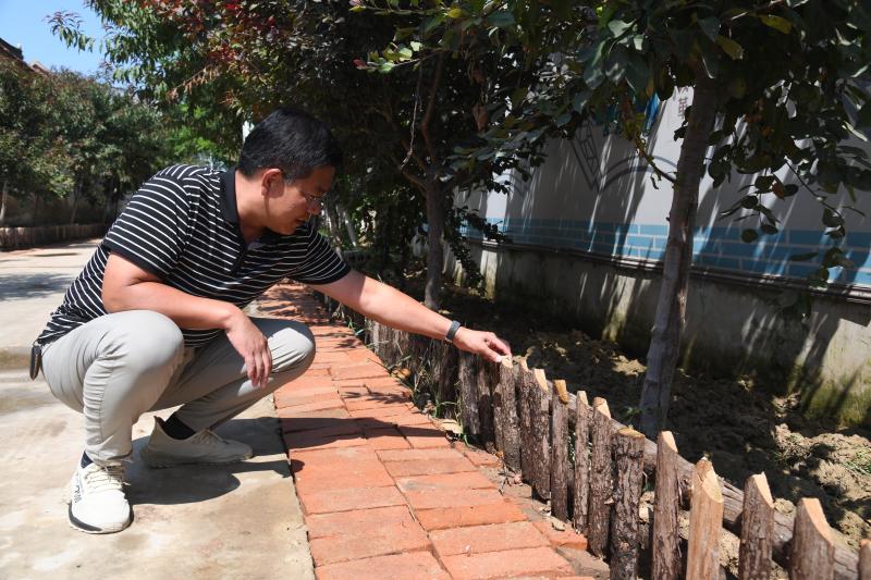 9月17日,商水縣鄧城鎮(zhèn)干部在路口村檢查用杉木制作的圍欄。該鎮(zhèn)在農(nóng)村人居環(huán)境整治中,本著“少花錢、多事辦”原則,充分發(fā)動(dòng)群眾參與,因地制宜,因陋就簡(jiǎn),努力打造各具特色的村容村貌。這種自制的杉木圍欄使用壽命和鋼塑材料一樣,制作成本節(jié)約一倍,因其物美價(jià)廉受到村民的喜愛。①15