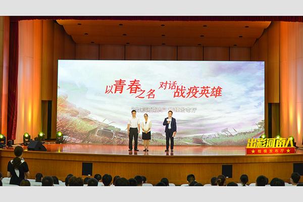 活動(dòng)化疫情危機(jī)為教育契機(jī),以“出彩河南人”楷模發(fā)布廳特別節(jié)目為藍(lán)本,以開(kāi)放式思政課為主要模式,以先進(jìn)典型事跡為支撐點(diǎn),通過(guò)“情景再現(xiàn)+互動(dòng)交流+點(diǎn)評(píng)總結(jié)”的方式,邀請(qǐng)河南省出席全國(guó)抗擊新冠肺炎疫情表彰大會(huì)的先進(jìn)代表與青年學(xué)生交流,分享現(xiàn)場(chǎng)感受,暢談心得體會(huì),為學(xué)生上了一堂愛(ài)國(guó)主義教育課、思想政治理論課、科學(xué)精神養(yǎng)成課,引導(dǎo)學(xué)生與時(shí)代同步伐、與人民共命運(yùn)、同祖國(guó)共成長(zhǎng)。此外,活動(dòng)還突出典型人物與學(xué)生互動(dòng),回答學(xué)生現(xiàn)場(chǎng)提問(wèn)和網(wǎng)絡(luò)留言,引導(dǎo)學(xué)生分享自己和身邊的典型故事,用藝術(shù)形式展示呈現(xiàn),激勵(lì)師生堅(jiān)持遠(yuǎn)大理想、擔(dān)負(fù)時(shí)代使命、書(shū)寫(xiě)絢麗華章,在偉大祖國(guó)復(fù)興的壯闊征程激揚(yáng)青春力量、放飛絢爛夢(mèng)想。