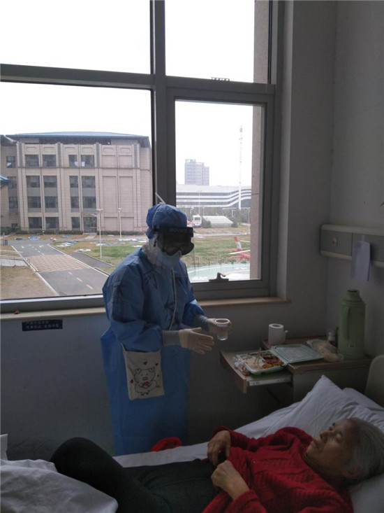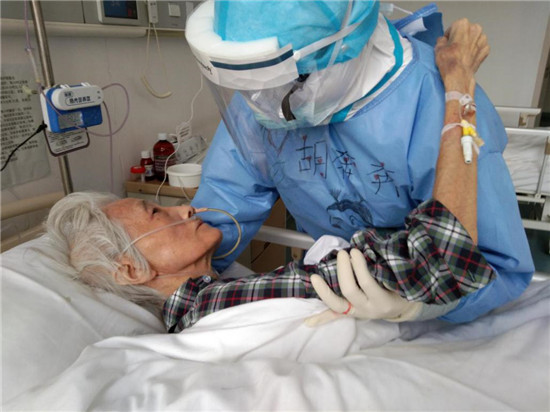今年74歲的李秀紅,不僅感染新冠肺炎,而且罹患老年癡呆,生活需要時(shí)時(shí)照顧,而且剛?cè)朐簳r(shí),對(duì)陌生環(huán)境的恐懼造成她心情壓抑,天天不說話,時(shí)不時(shí)落淚。為了讓老人放下心理包袱,胡奔奔在進(jìn)行哄喂吃飯、服藥等正常護(hù)理之余,經(jīng)常陪老人聊天、唱歌,后來老人情緒明顯好轉(zhuǎn),還主動(dòng)與胡奔奔一起扭起了舞蹈。后來,老人康復(fù)出院時(shí),雖然無言 卻一直緊緊抓著胡奔奔的手久久不愿放開。胡奔奔說,那一刻,她落淚了,但心里確實(shí)說不出的高興。