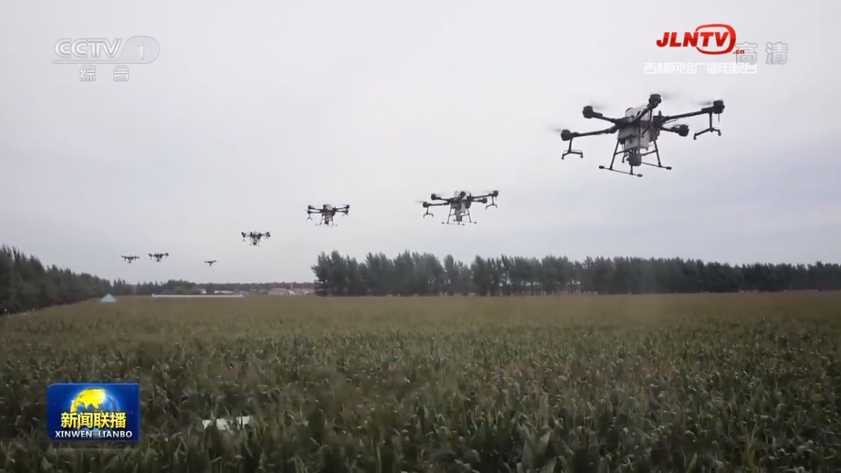 記者來到梨樹縣這片綠色食品原料(玉米)標(biāo)準(zhǔn)化生產(chǎn)基地時(shí),遠(yuǎn)近聞名的產(chǎn)糧大戶張文鏑正通過無人機(jī)給他的玉米地施肥。