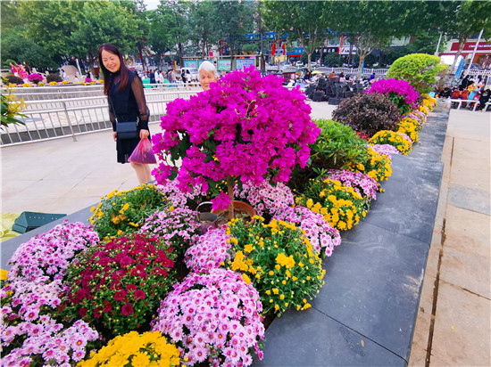 9月27日,在中心城區(qū)五一文化廣場,市民在鮮花盛開的花壇走過。“十一”臨近,五一文化廣場裝扮一新,各色花卉和造型樹木分布在廣場的各個(gè)方位的花壇內(nèi),吸引市民觀賞拍照。②9