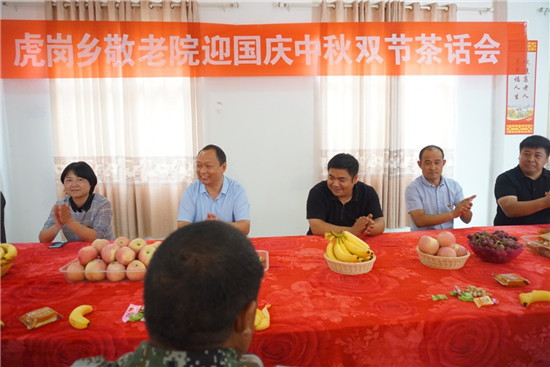 尊老、敬老、愛(ài)老是中華民族的傳統(tǒng)美德。9月28日,在國(guó)慶、中秋佳節(jié)來(lái)臨之際,鄲城縣虎崗鄉(xiāng)敬老院舉辦了迎國(guó)慶、中秋雙節(jié)茶話會(huì),豐富了老人們歡慶、團(tuán)圓的節(jié)日氛圍?;忇l(xiāng)全體黨政班子成員參加了此次茶話會(huì)。