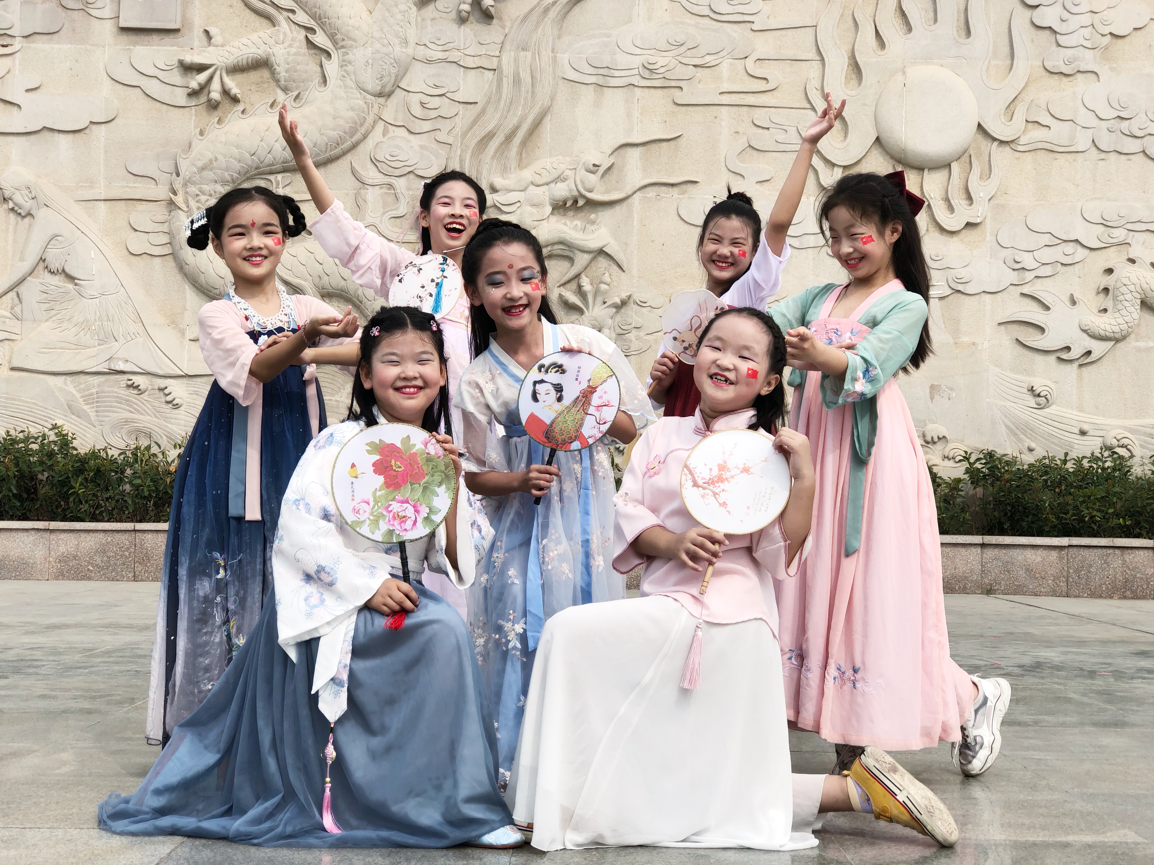 圖片說明:孩子在五一廣場表演節(jié)目 歡度佳節(jié)