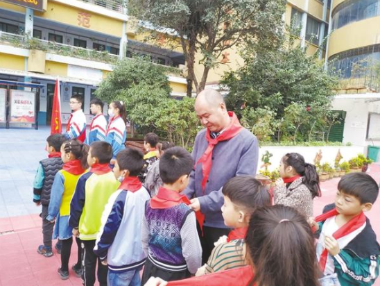 10月13日,是中國(guó)少年先鋒隊(duì)誕辰日,又稱少先隊(duì)建隊(duì)紀(jì)念日。周口市文昌小學(xué)堅(jiān)持以立德樹人,把課堂教學(xué)與主題活動(dòng)相結(jié)合,開展了多種多樣的“國(guó)旗下成長(zhǎng)”主題教育活動(dòng)。圖為在10月12日的升旗儀式上,六(4)中隊(duì)少先隊(duì)員向全校學(xué)生普及紅領(lǐng)巾知識(shí)。記者 王珂 通訊員 魏云紅 攝