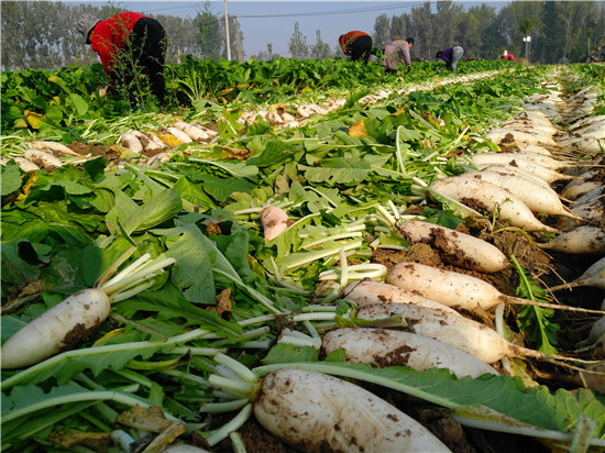 “這種蘿卜,我發(fā)展得有三四年了。原來(lái),我在北京那邊,也是以經(jīng)營(yíng)白蘿卜為主。看到別人種蘿卜能掙錢(qián),我就回咱老家來(lái)發(fā)展。”王海鵬說(shuō)。
