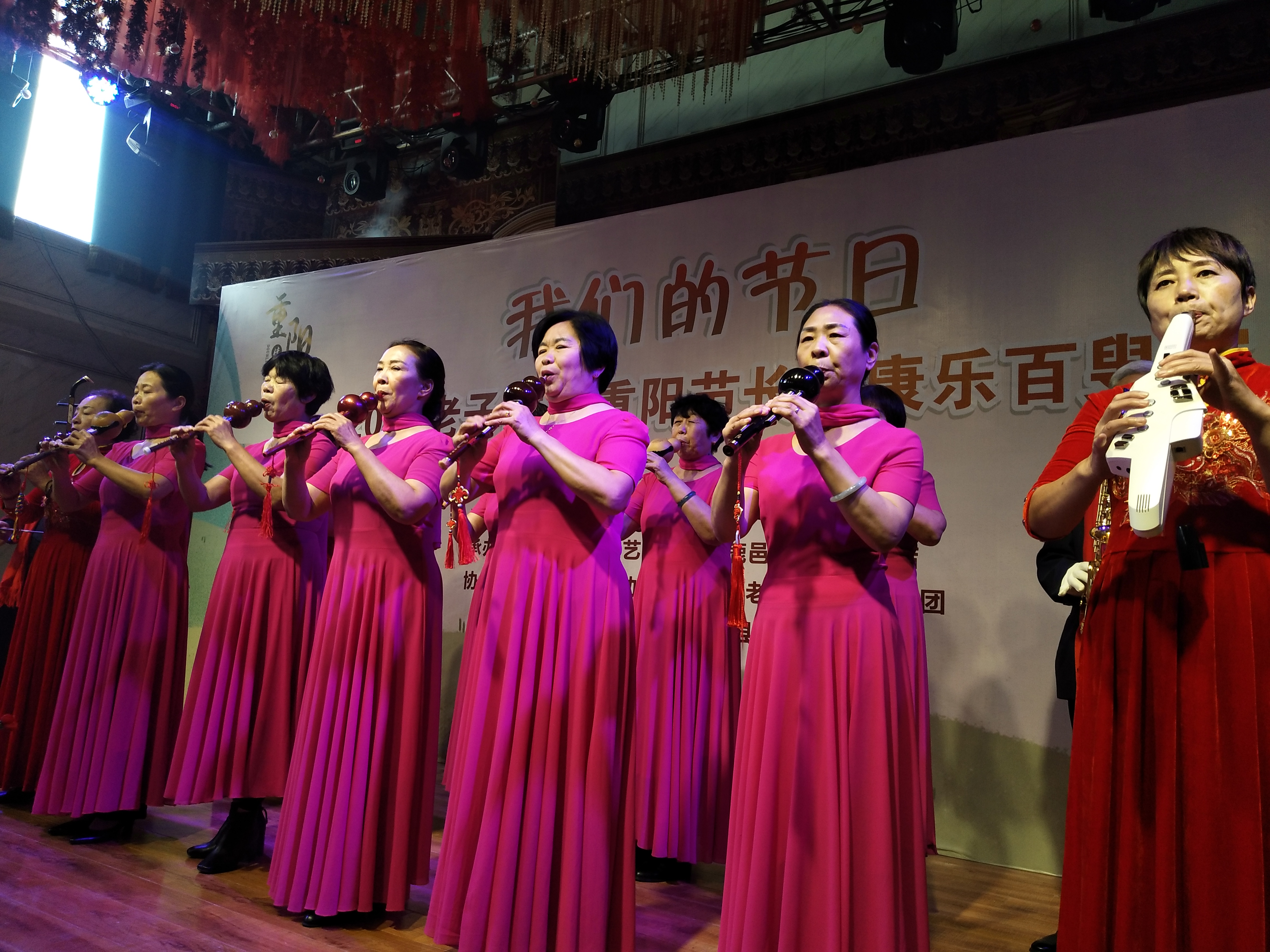 鹿邑縣舉辦的“我們的節(jié)日——2020老子故里長安康樂百叟宴”于上午11時開始,來自縣曲藝家協(xié)會、縣詩詞協(xié)會、縣書畫協(xié)會的老藝術(shù)家們進行才藝展示,首先是縣老干部大學葫蘆絲隊表演了葫蘆絲合奏《花好月圓》《九月九的酒》,縣詩詞協(xié)會的翟明、張明山、林建華分別放聲朗誦了《重陽禮贊》《我愛仙鄉(xiāng)的土地》《歡聚在長安》,而縣曲藝家協(xié)會的史云龍表演的墜子《王華買爹》更是別有風情……