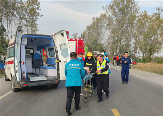 周口市商水縣公安局交警大隊為提高民警處置國、省道市縣結合部路段道路交通事故應急救援能力,第一時間救助受傷人員,最大限度將交通事故造成的人員傷亡、財產(chǎn)損失、環(huán)境污染等危害后果降低到最小限度。10月26日下午3時,在周口市交警支隊事故科王領科長的協(xié)調(diào)指揮下,商水縣公安局交警大隊聯(lián)合駐馬店市上蔡縣公安局交警大隊,在223省道(原219省道)商水縣與上蔡縣交界處的上蔡縣華陂鎮(zhèn)賴莊路段,模擬大貨車與微型貨車發(fā)生事故現(xiàn)場,演練省道市際突發(fā)道路交通事故應急救援行動。