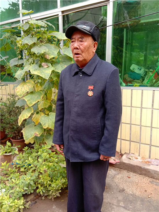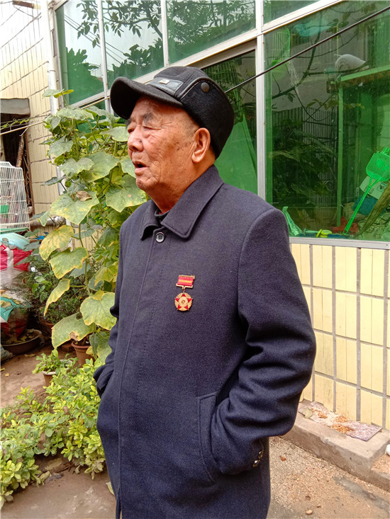 快到王景文家時,記者與他取得了聯(lián)系,沒想到他竟到路口來迎記者,看到他硬朗的身板和健康的身體,聽他說話聲音洪亮、底氣十足,記者還是很欣慰的,畢竟經(jīng)歷了70年的風(fēng)雨洗禮,還能行走自如、聲如洪鐘,的確是寶刀不老。被他迎進(jìn)家,其老伴滿頭銀發(fā),喜瞇瞇地讓記者進(jìn)屋,王老先生去里屋找出了一枚抗美援朝紀(jì)念章,并說抗美援朝和平紀(jì)念章等物品都放丟了,找不到了,有些遺憾。記者就開門見山地說要聽他講講參加抗美援朝的故事,他不好意思地笑了:“講不好,年齡大了,記性不好,有好多事都記不清了……”當(dāng)問起他老家是哪里時,王老先生還是打開了話匣子。1934年,他出生在淮陽縣劉振屯鄉(xiāng)耿樓大隊李樓村,由于家境貧寒,他從小就跟隨家人一路逃荒要飯來到了扶溝,但日子還是艱難,為了能活命,父母無奈把他送給了扶溝縣城一戶人家,從此他就成了這戶人家的孩子,并于1951年5月結(jié)婚??山Y(jié)婚沒幾個月,縣里就開始征兵了。當(dāng)兵離家,要丟下妻子,更何況妻子已有孕在身,他真舍不得;保家衛(wèi)國,是義務(wù)是責(zé)任是擔(dān)當(dāng),他責(zé)無旁貸。家與國,他毅然選擇去當(dāng)兵。與新婚燕爾的妻子依依惜別,他踏上了行軍的征程。那時可沒有車接送,去往目的地,全靠兩條腿,行軍與訓(xùn)練的苦與累難以想象。問他不害怕當(dāng)兵打仗嗎?他回答:“不怕!”語氣堅定而有力。生活的磨難讓他對安穩(wěn)的生活有一種渴望,他明白戰(zhàn)爭會讓國家陷入混亂不堪的局面,老百姓的生活會更加艱難,為了祖國的和平安寧和兄弟姐妹的幸福,他愿意去當(dāng)兵打仗。保家衛(wèi)國的種子早已種在了他的心里。
