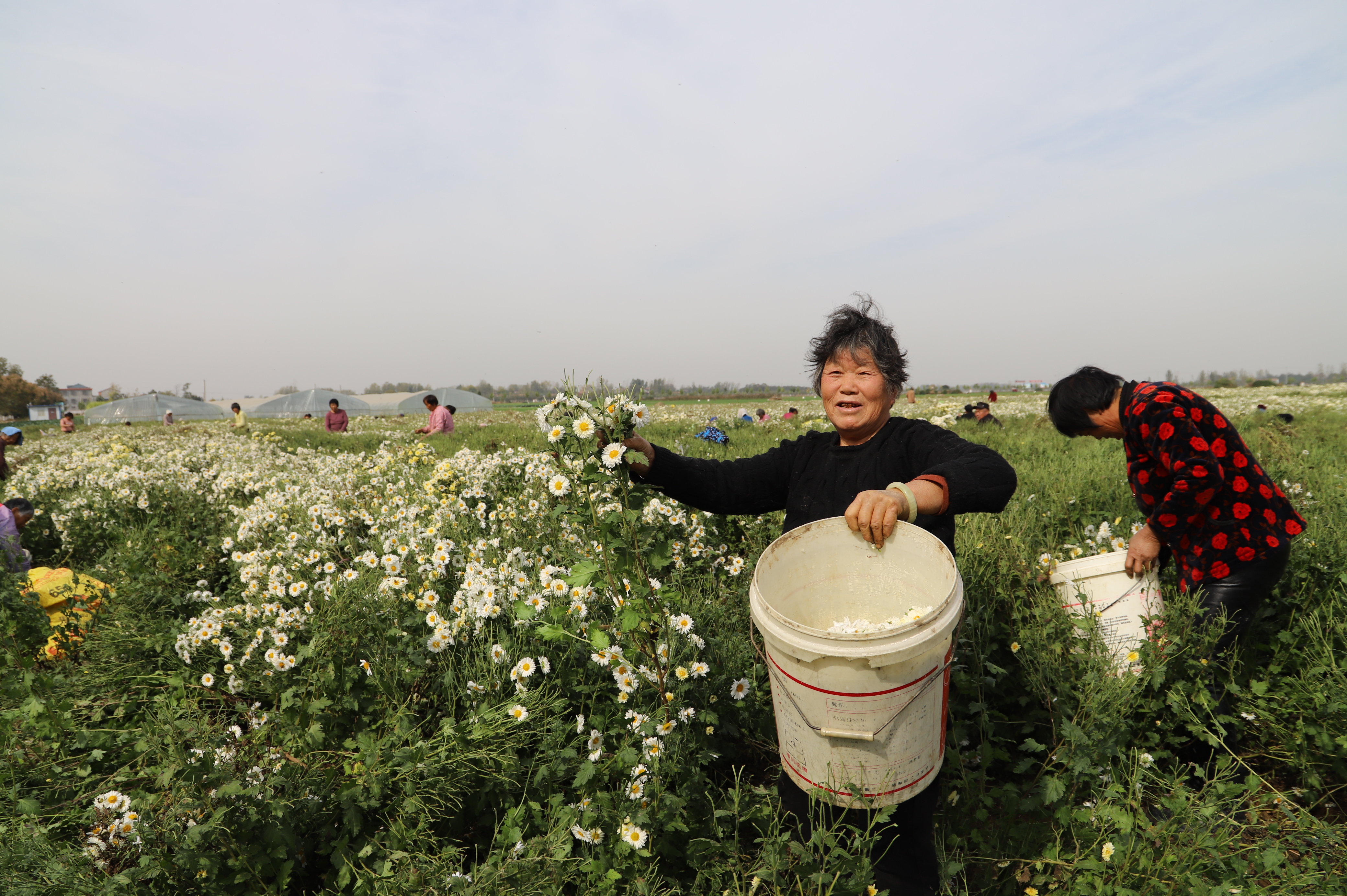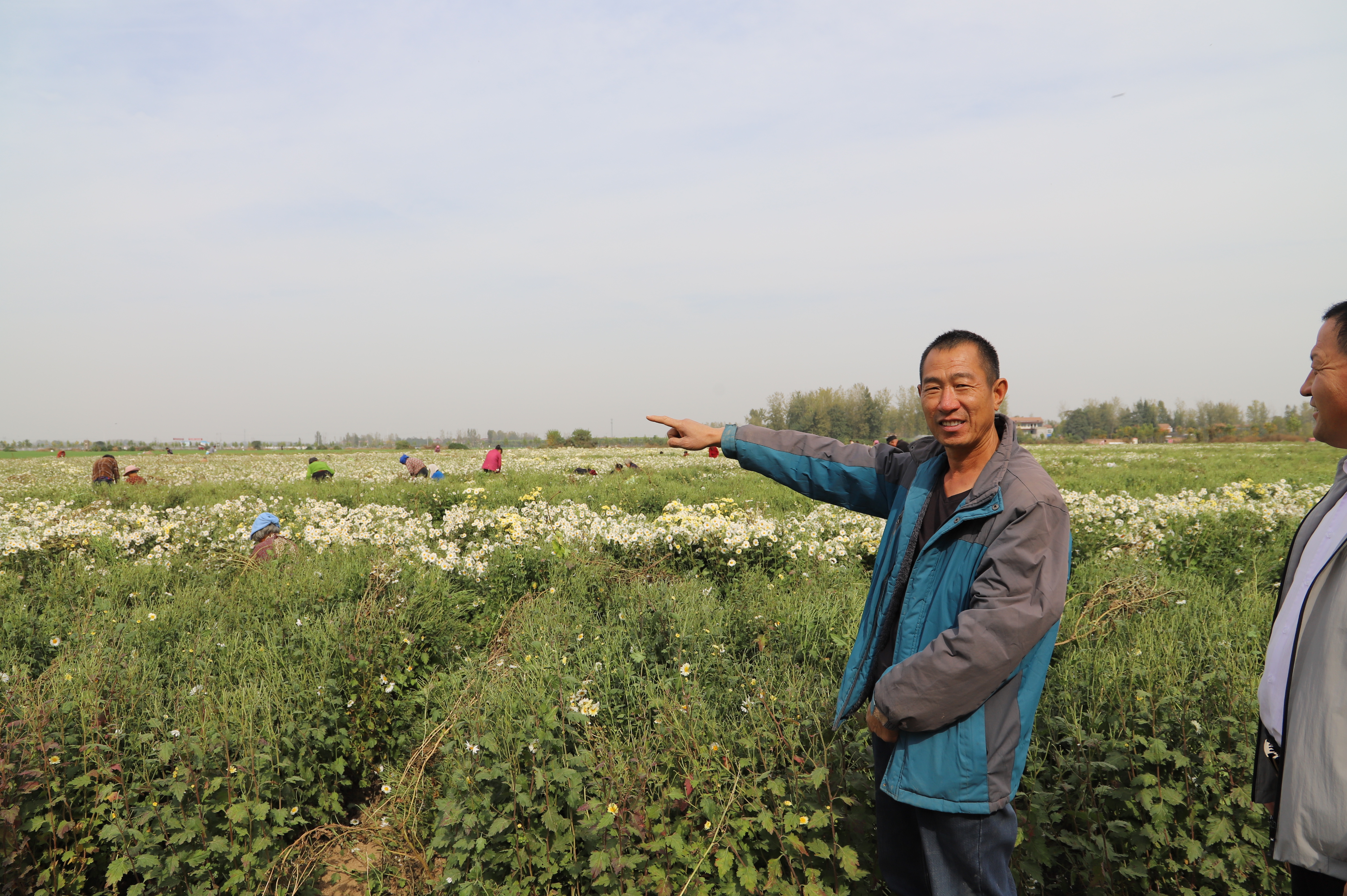 “像這樣含苞待放的胎菊,都被收作為花茶加工銷售;這些怒放的花朵有的作為藥材送往亳州,有的被精選送到王老吉廠家作為茶原料。說不定,你喝過的王老吉就是俺這塊田里的菊花味兒呢。”晉振中笑著說。