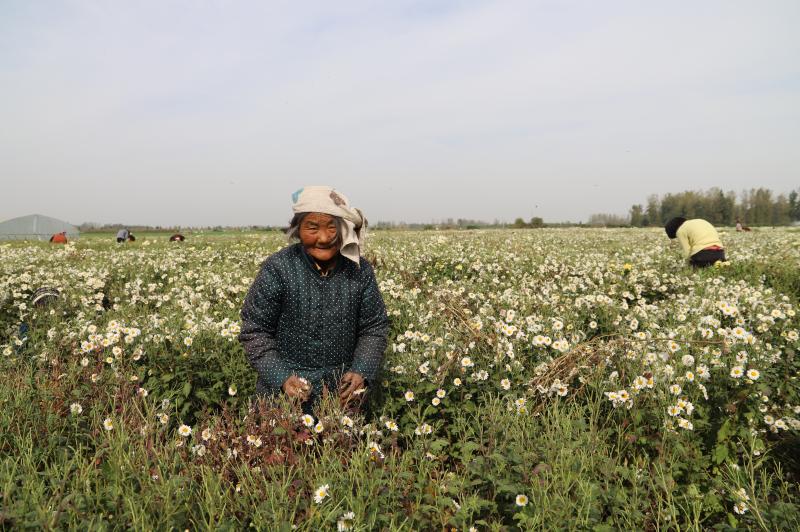 原來,菊花田的老板叫晉振中,于2018年從全縣脫貧攻堅種植信息渠道得知種菊花能致富,銷售的末端是安徽亳州的藥材市場和一些花茶商家。特別是種植方式和平原種植紅薯一樣,把田地打成壟,栽苗、施肥、澆水、除草,9月份采摘一次、11月份采摘一次,剩下的菊花秸稈粉碎到田間作為肥料,還能種植晚小麥,十分方便。于是,他通過鎮(zhèn)村兩級黨員干部協(xié)助流轉(zhuǎn)了100畝土地,2019年就掙了20多萬元。由于晉菜園村是貧困村,在他的菊花田務(wù)工的勞動力大多是貧困戶,能帶動近百戶貧困戶脫貧致富,晉振中欣慰地覺得自己為脫貧攻堅做了一份大貢獻。