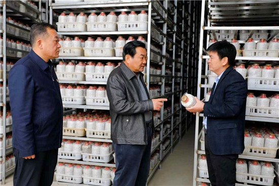 在羅古洞行政村預(yù)脫貧戶許廣東家中,王國璽聽取了該戶的幫扶情況匯報(bào),詳細(xì)詢問許廣東政策落實(shí)情況,對(duì)該戶采取的針對(duì)性幫扶措給予了肯定。在華瑞農(nóng)牧食用菌基地,王國璽參觀了該基地產(chǎn)品展示廳、直播間,了解企業(yè)生產(chǎn)、擴(kuò)建情況,夸贊該企業(yè)為全縣特色食用菌種植帶好了頭,起到了很好的示范帶動(dòng)作用,鼓勵(lì)該企業(yè)要利用好網(wǎng)絡(luò)直播平臺(tái),拓寬產(chǎn)品銷路,增加企業(yè)效益,帶動(dòng)更多群眾受益。在君趙食用菌基地,王國璽實(shí)地了解該企業(yè)菌種制作、生產(chǎn)流程,并對(duì)菌包生產(chǎn)、加工過程提出了改進(jìn)建議。