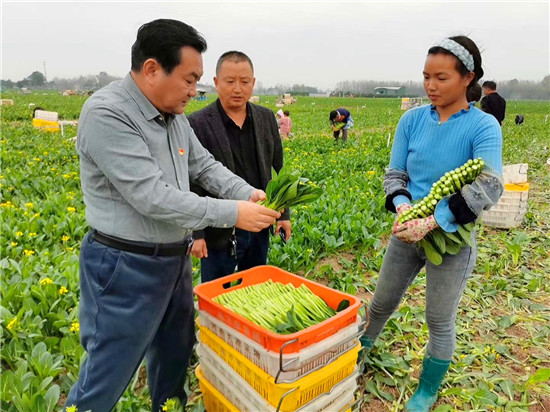 在張集鎮(zhèn)景鴻蔬菜種植基地,王國璽與正在干活的群眾親切交談,進(jìn)菜地、看長勢(shì)、問產(chǎn)量,詳細(xì)了解產(chǎn)業(yè)規(guī)劃建設(shè)、政策落實(shí)、發(fā)展規(guī)模、運(yùn)營模式、產(chǎn)品銷路、帶貧成效等具體做法和經(jīng)驗(yàn)。王國璽指出,在疫情防控常態(tài)化下,鄉(xiāng)賢有效利用資本市場(chǎng),與家鄉(xiāng)勞動(dòng)力資源、土地資源有效銜接,發(fā)揮產(chǎn)品優(yōu)勢(shì),增加群眾收入,鞏固了脫貧成果,為鄉(xiāng)村振興打下了堅(jiān)實(shí)基礎(chǔ),要做好宣傳推廣和經(jīng)驗(yàn)總結(jié)。