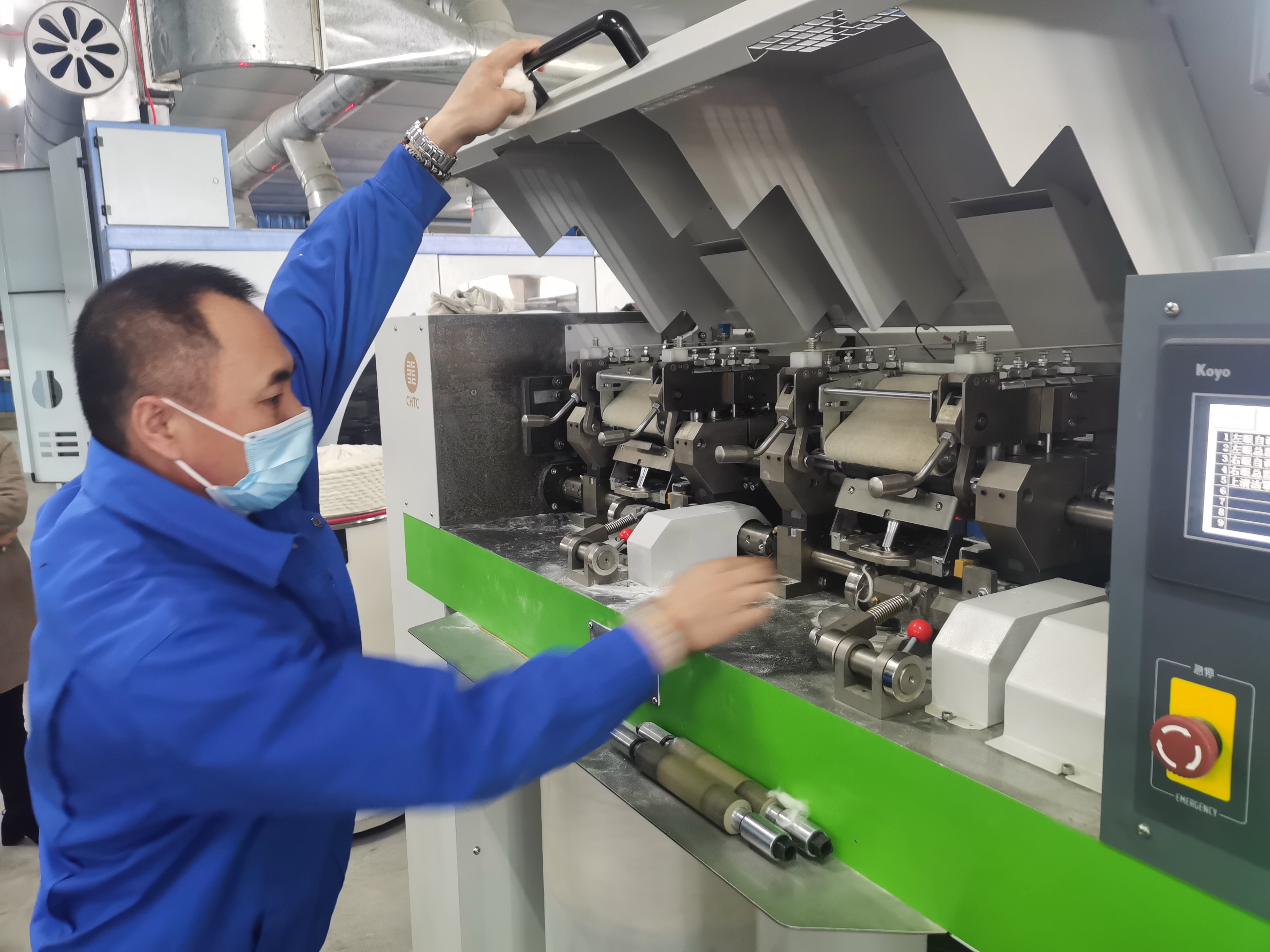 11月9日,扶溝縣博發(fā)紡織有限公司一期2萬紗錠生產(chǎn)線進(jìn)口設(shè)備安裝完畢,正在試車。