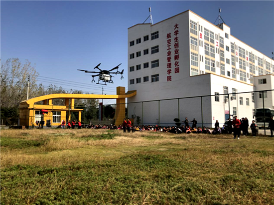 “快看,無人機(jī)飛起來了!”“哇,飛得這么高,還來去自如!”11月7日,伴隨一陣陣驚呼和贊嘆聲,幾架無人機(jī)緩緩升到空中,這是西華縣無人機(jī)產(chǎn)業(yè)園黨支部黨員飛手給小朋友們模擬農(nóng)田打藥的場(chǎng)景。