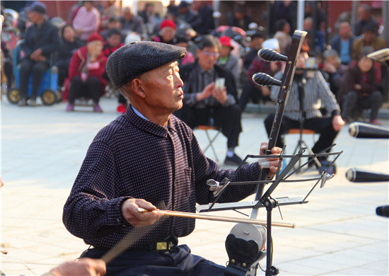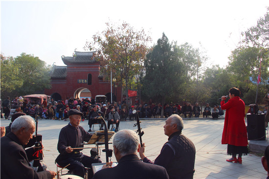 11月10日,戲迷朋友在商水縣郝崗鎮(zhèn)北社村千年古塔旁表演戲曲節(jié)目。初冬時(shí)節(jié),暖陽普照,壽圣寺古塔附近的戲迷和樂器愛好者自發(fā)來到千年古塔旁表演戲曲節(jié)目,為當(dāng)?shù)厝罕娝蜕暇实奈幕蟛?,進(jìn)一步活躍了農(nóng)村文化生活。①15周口日?qǐng)?bào)·周道客戶端記者付永奇 通訊員 呂耀光 攝