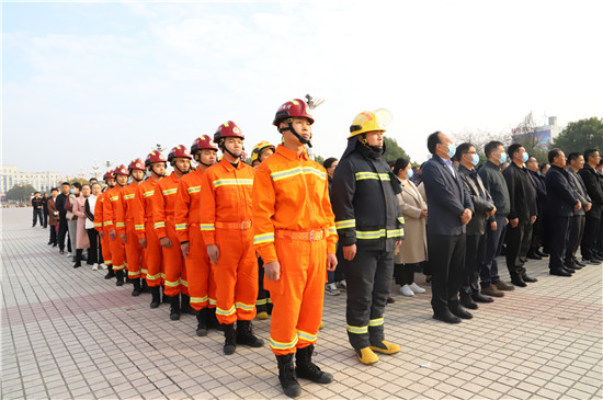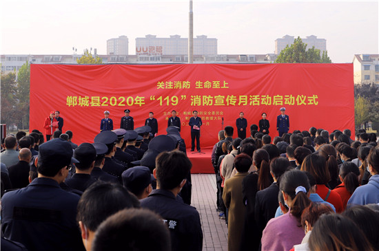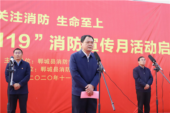11月11日,鄲城縣在世紀廣場舉行2020年消防宣傳月活動啟動儀式,目的是進一步提高全民消防安全意識,促使“關(guān)注消防 生命至上”的主題深入人心,廣泛發(fā)動社會各界關(guān)注消防、參與消防,營造良好的宣傳氛圍,預(yù)防和減少火災(zāi)事故發(fā)生,確保人民群眾生命財產(chǎn)安全。縣長李全林出席會議并宣布消防宣傳月活動啟動,縣委常委、常務(wù)副縣長胡友濤主持會議,縣領(lǐng)導謝超、王彪、陳鳳祥、李素梅及縣公安局政委趙紅建參加會議。