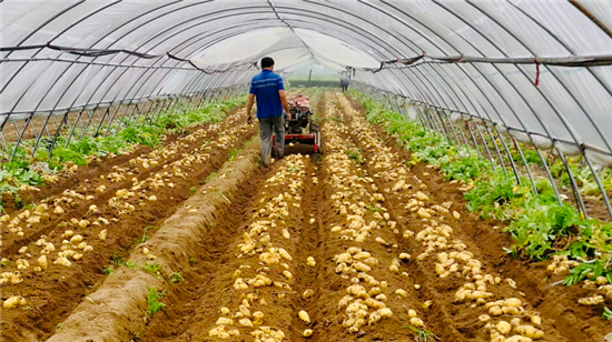 試點(diǎn)村宋崗、王村率先嘗試鋼架拱棚種植,春季在棚內(nèi)種植土豆,夏季養(yǎng)殖豆蟲,秋季種植糯玉米、水果玉米、小尖椒、有機(jī)花菜等,“三季連作”,立體化種植。當(dāng)年,這兩個(gè)村的群眾收成喜人,收入翻番。