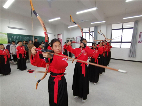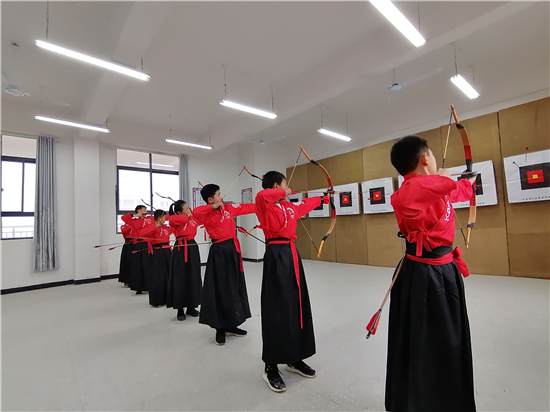 在皮營學(xué)?;顒邮?,學(xué)校舞蹈社團的小朋友展示了傳統(tǒng)儀式《鹿鳴》,深情的演繹,展示了他們對國學(xué)經(jīng)典的理解。禮射是禮樂文明重要組成部分,習(xí)射先習(xí)禮,射以觀德。習(xí)射可以強健體魄,其中還蘊含了眾多古人先賢的智慧。皮營學(xué)校禮射興趣班的小朋友進行禮射表演,隨著挾矢,正筈,審固,舉弓,引彀,發(fā)矢,斂弓,執(zhí)弦等一系列指令,拈弓搭弦展示禮射八法。在這里,學(xué)生們通過不同方式的展示,詮釋自己對“禮”“樂”的理解和認(rèn)知。