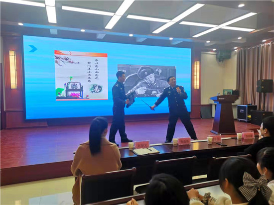 課堂上, 公安民警用鮮活的案例剖析青少年違法犯罪的心理軌跡,讓同學(xué)們做遵紀(jì)守法好學(xué)生。民警們解讀了社會(huì)主義核心價(jià)值觀基本內(nèi)涵和具體要求,教育同學(xué)們要愛黨愛國愛校園愛學(xué)習(xí),做人誠信,做事友善。民警們還教會(huì)學(xué)生們?nèi)绾巫R(shí)別毒品,認(rèn)識(shí)毒品危害,做到拒絕、遠(yuǎn)離毒品,爭當(dāng)禁毒小小宣傳員。對(duì)如何防范被刀棍傷害,民警們演示了書包板凳防護(hù)法。③5