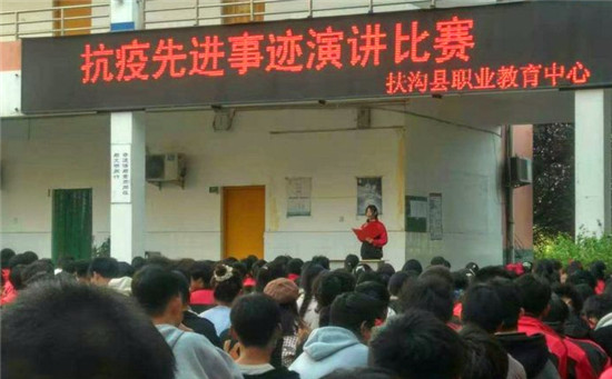 這是扶溝縣職業(yè)教育中心2020級美術(shù)班賈珍珍同學(xué)的激情演講。他的演講,感染了在場的1000余名師生。11月14日,為落實扶溝縣教體局《關(guān)于加強新時代中小學(xué)思想政治理論課教師隊伍建設(shè)工作的實施方案》中“發(fā)掘地方資源,開展先進人物和紅色教育進課堂活動,讓思政課成為有溫度的課”的具體要求,學(xué)校思政處組織開展了以歌頌該縣人民醫(yī)院護士劉海燕先進事跡為主題的“抗疫先進事跡”演講比賽。