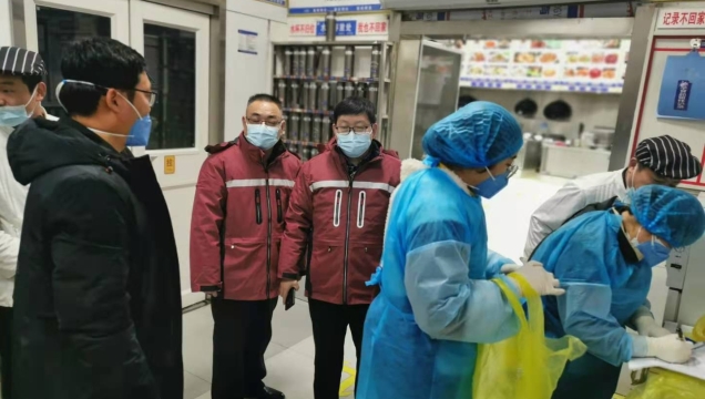 為助力第一屆周商大會圓滿成功,市衛(wèi)生健康委抽調近百名調精兵強將組成衛(wèi)生保障專班開展衛(wèi)勤保障工作。圖為工作人員在市委黨校迎賓館和體育賓館餐廳對后廚人員做核酸檢測及開展冷鏈食品消毒。