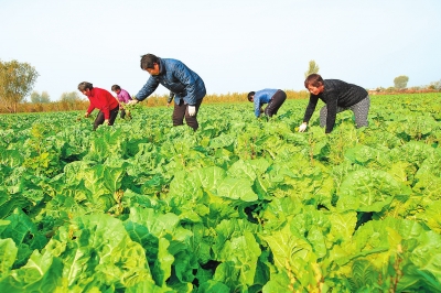 ??h小河鎮(zhèn)張劉莊村村民喜收白菜本報(bào)記者郭戈攝 |