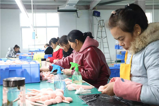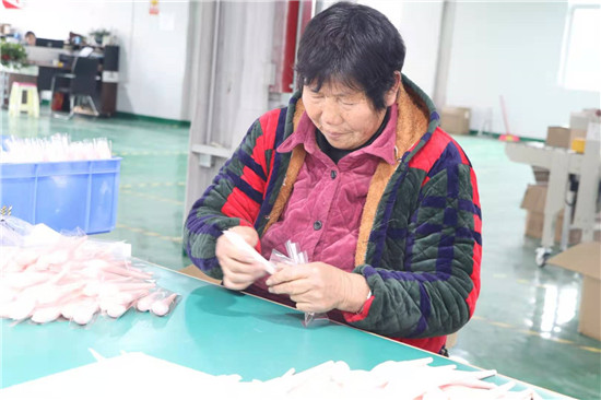 河南雅彩美妝用具有限公司負(fù)責(zé)人趙廣才介紹,公司主要從事化妝刷、美妝用具加工,十分適宜留守婦女干。車間里的工人基本都是貧困戶和住在附近的留守婦女。在家門口上班,既能掙錢,又方便照顧家人。每天中午公司還提供午餐,工人早上來上班,下午下班不耽誤回家照看孩子。“我上班已經(jīng)10多天了,再過不久,就可以領(lǐng)工資了,真是高興!”68歲的村民張美榮告訴記者,家里孩子們都大了,自己在家閑著也沒啥事,她就到包裝車間上班,一個月算下來能掙2000多元,活也不重,既鍛煉了身體,又提高了家庭收入。