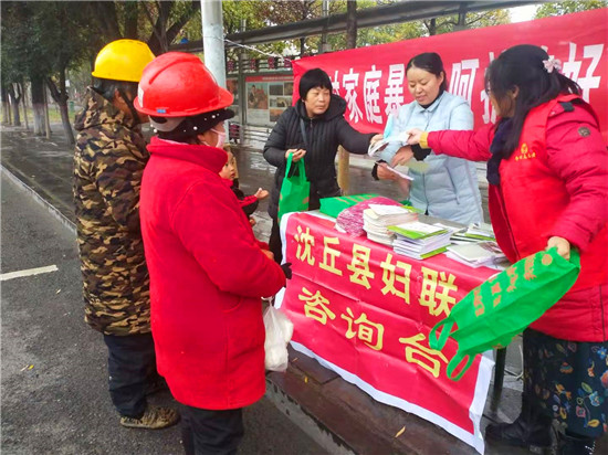 11月25日是國(guó)際反家庭暴力日。為進(jìn)一步提高全社會(huì)反家庭暴力意識(shí),加大對(duì)《反家庭暴力法》的宣傳,有效預(yù)防和制止家庭暴力,促進(jìn)家庭和諧,保障婦女群眾在婚姻家庭中的合法權(quán)益。為此,沈丘縣婦聯(lián)在城區(qū)組織開(kāi)展了以“反對(duì)家庭暴力,呵護(hù)美好生活”為主題的法治宣傳活動(dòng)。