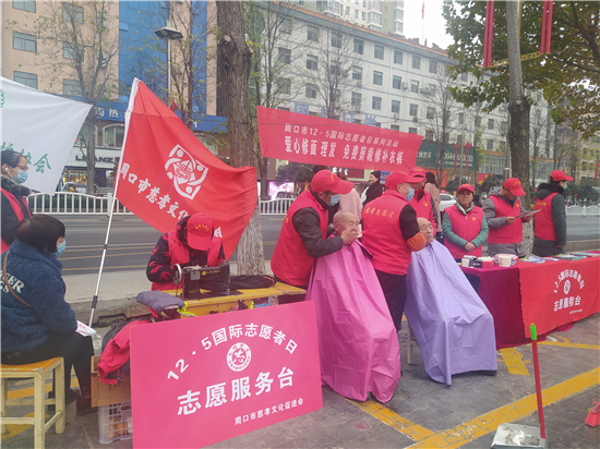 12月6日下午,周口市慈孝文化促進會、周口環(huán)境保護協(xié)會的志愿者來到周口中心城區(qū)五一文化廣場開展以愛心剪發(fā)、免費剪裁、修補衣褲為主要內(nèi)容的便民志愿服務(wù)活動。