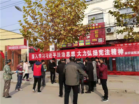 12月4日是第七個國家憲法宣傳日。為深入學(xué)習(xí)宣傳習(xí)近平法治思想,努力營造和諧穩(wěn)定的鄉(xiāng)村環(huán)境和法治氛圍,推動全鎮(zhèn)“深入學(xué)習(xí)宣傳習(xí)近平法治思想、大力弘揚(yáng)憲法精神”。崔橋鎮(zhèn)組織司法所、派出所等采取多種形式,開展了憲法宣傳。