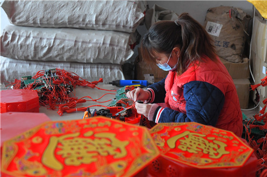 放鞭炮和吃餃子都是中國傳統(tǒng)年味兒的重要組成部分。近年來,燃放鞭炮帶來的環(huán)境污染以及事故隱患等問題日益突出,全國各個地市都相繼出臺了限制燃放傳統(tǒng)煙花炮竹的相關政策和規(guī)定。怎么樣既滿足人們延續(xù)傳統(tǒng)習俗的愿望,又與環(huán)保安全相呼應,讓“年味兒”更足?商水縣魏集鎮(zhèn)產業(yè)扶貧基地一帆工藝制作工廠總經理賀潘海給出了答案——電子鞭炮。