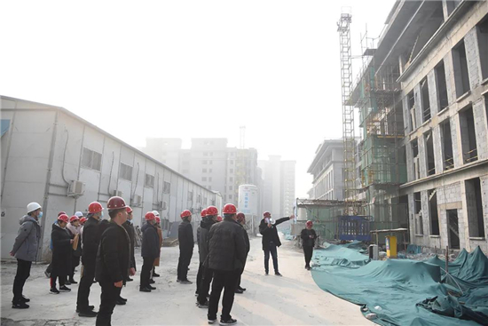 當(dāng)日上午,受院長(zhǎng)于健委托,院領(lǐng)導(dǎo)張廣海、葉達(dá)林、王文鋒、王成坤帶領(lǐng)醫(yī)政、護(hù)理、控感等相關(guān)職能科室負(fù)責(zé)人,一行20余人到建設(shè)工地現(xiàn)場(chǎng)察看。施工方技術(shù)人員詳細(xì)介紹了門(mén)診樓、病房樓等各樓層的功能定位、科室布局、水暖線路等,雙方就一些細(xì)節(jié)問(wèn)題進(jìn)行深入交流。