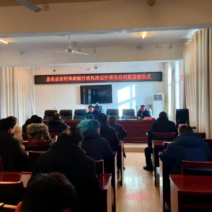 “我鄭重向祖國、向人民宣誓:忠于國家,忠于人民,忠于憲法和法律;堅持執(zhí)法為民,堅持依法行政,維護(hù)公平正義;以維護(hù)人民群眾利益、維護(hù)法律權(quán)威為已任,有法必依,違法必究,認(rèn)真履行法定職責(zé)?!?2月31日上午9時,鹿邑縣農(nóng)業(yè)農(nóng)村局在三樓會議室召開新版農(nóng)業(yè)綜合行政執(zhí)法證件頒發(fā)啟用暨宣誓儀式大會。該局局長陳東振為51名執(zhí)法人員辦法了新版行政執(zhí)法證并提出具體要求。副局長丁文杰主持宣誓儀式大會并領(lǐng)誓。