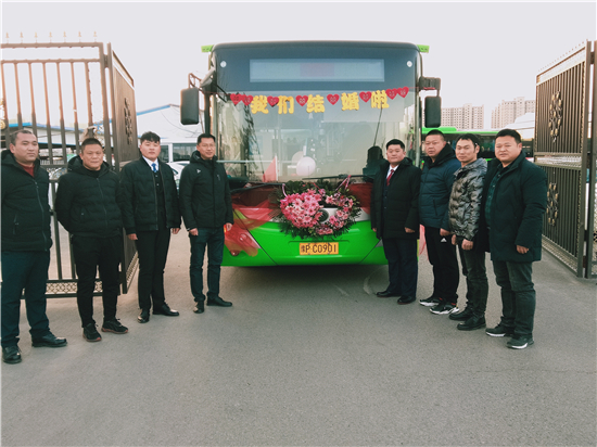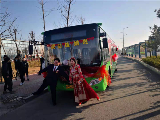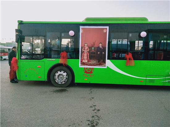 1月1日早上,裝飾一新的6輛迎親公交車吸引了眾人的目光。周口公交一公司19路公交車司機(jī)、新郎買亞飛用公交車,迎娶同為公交車司機(jī)的新娘裴丹陽,被當(dāng)作婚車的公交車為新能源車,正是新郎和新娘平時駕駛的19路和9路公交車,以及15路公交車。整個婚禮,親朋好友都是乘坐公交車趕往婚禮現(xiàn)場,環(huán)保又有新意。