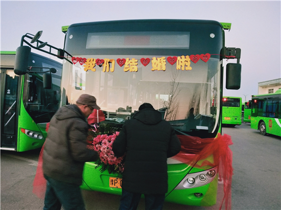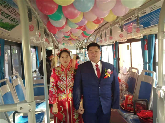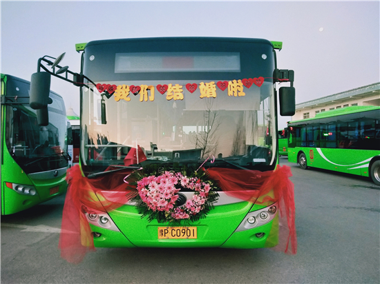 “這個想法是我和我媳婦一起商量出來的。我們覺得別人結(jié)婚都是用婚車,有點千篇一律。我們作為公交人就想另辟蹊徑,用我們公司的公交車當(dāng)婚車,同時也倡導(dǎo)綠色出行,還很有紀(jì)念意義?!?新郎買亞飛告訴記者。