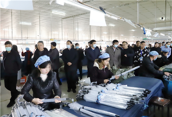近年來,鄲城一直致力探索培育新的縣域經(jīng)濟(jì)增長點(diǎn)。鄲城縣委、縣政府組成黨政考察招商團(tuán),數(shù)次赴珠三角、長三角等經(jīng)濟(jì)區(qū)走訪和調(diào)研,推介鄲城、招才引智、招商引資、謀求共贏。千淘萬漉出真金,通過反復(fù)論證,充分發(fā)揮鄲城有10萬在外務(wù)工人員從事制傘行業(yè)這一優(yōu)勢,把握東南沿海傘業(yè)向內(nèi)地轉(zhuǎn)移的良機(jī),培育縣域經(jīng)濟(jì)傘業(yè)新動(dòng)能的思路逐漸清晰起來。