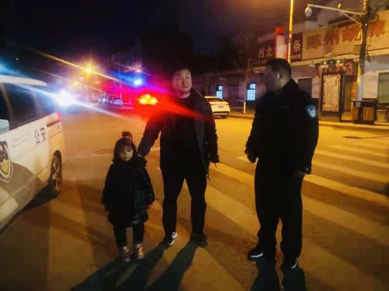 昨日20時許,鄲城公安局食藥環(huán)大隊(duì)副中隊(duì)長郭海峰和協(xié)警王峰在分包路段幸福路巡邏時,發(fā)現(xiàn)一名4歲左右的小女孩獨(dú)自一人橫穿馬路,沒有大人陪同,存在嚴(yán)重安全隱患。