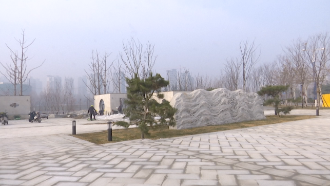 1月4日上午,記者在現(xiàn)場(chǎng)看到,映入眼簾的是一塊巨大的景觀石,造型如山峰,氣勢(shì)巍峨,左右兩側(cè)擺放黑松,使得整個(gè)游園風(fēng)格簡(jiǎn)潔,自然爽朗,歷史元素厚重,在功能布局上,還配建了健身小廣場(chǎng)、休憩廊架等,提升了游園的綜合服務(wù)功能,成為周邊市民游玩鍛煉的好去處。