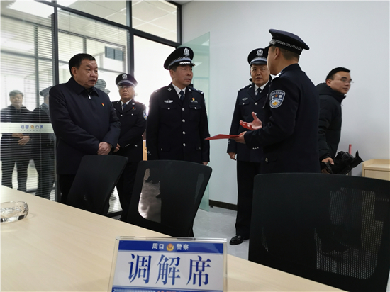 揭牌儀式后,參加儀式的全體人員實(shí)地參觀了華耀城派出所軟硬件設(shè)施等。據(jù)了解,該派出所學(xué)習(xí)借鑒一線(xiàn)先進(jìn)城市公安派出所營(yíng)房建設(shè),具備群眾接待區(qū)、非警務(wù)警情分流區(qū)、民警工作區(qū),分區(qū)合理,同時(shí)派出所視頻指揮室更是具備了警務(wù)可視化、和警務(wù)搜索查找功能,以科技服務(wù)破案、服務(wù)民生。派出所的成立,對(duì)進(jìn)一步提升轄區(qū)打防管控水平、營(yíng)造和諧穩(wěn)定的營(yíng)商環(huán)境必將起到積極的推動(dòng)作用。作為華耀城派出所首任所長(zhǎng)邵海濤表示,全所上下將始終堅(jiān)持“不忘初心、牢記使命”,大力弘揚(yáng)新時(shí)代周口公安精神,忠誠(chéng)履職、忠于職守,以最高標(biāo)準(zhǔn)、最佳狀態(tài),為轄區(qū)群眾保駕護(hù)航。