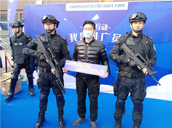 活動現(xiàn)場設(shè)置了“反假幣主題區(qū)”“消防主題區(qū)”“防電詐主題區(qū)”“禁毒主題區(qū)”“互動區(qū)”等形式多樣的功能展示區(qū),現(xiàn)場接受群眾咨詢,與市民深度互動,讓市民近距離體驗、全面感受人民警察的日常工作。除此之外,民警還進行了槍械展示、無人機展示等內(nèi)容。