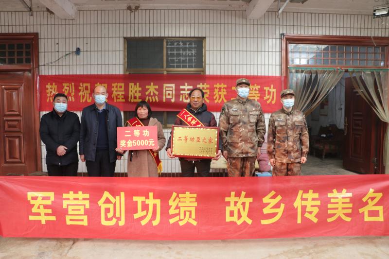 1月21日下午,太康縣高賢鄉(xiāng)保渡村現(xiàn)役軍人程勝杰家門前鑼鼓喧天,喜氣洋洋,熱鬧非凡。太康縣委常委、縣人武部部長于永前,政委郭立君,縣退役軍人事務(wù)局局長潘布道,高賢鄉(xiāng)黨委書記鄭宏等相關(guān)領(lǐng)導(dǎo)一行,為榮立二等功的程勝杰家屬送來了立功喜報(bào)、“二等功臣之家”牌匾及5000元慰問金。