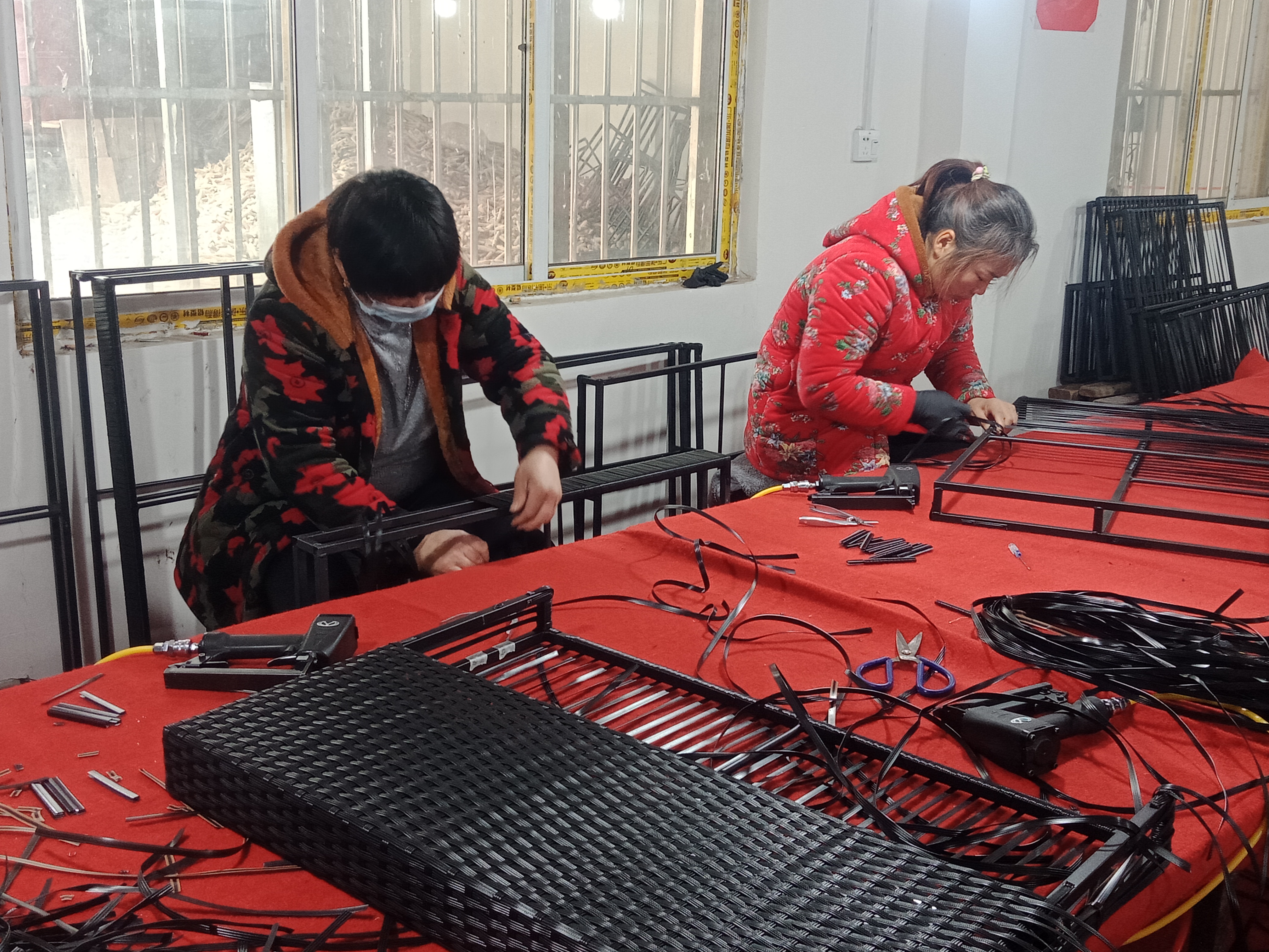 戶外藤編沙發(fā)巧媳婦工程加工車間是商水縣袁老鄉(xiāng)賈寨行政村村委為幫村民脫貧致富而引進的,生產(chǎn)為訂單作業(yè),產(chǎn)品多數(shù)銷往國外。該村加工車間是今年1月開工的。