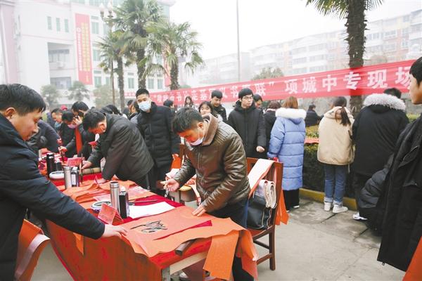 1月23日上午,項城市中等專業(yè)學(xué)校、市書法家協(xié)會聯(lián)合開展了“我們的節(jié)日——義寫春聯(lián)進(jìn)校園”活動,黃樹民等6位書法家受邀來校為廣大師生義務(wù)書寫春聯(lián)。師生代表紛紛請名家為自己寫春聯(lián),整個活動洋溢著歡樂祥和的氣氛?!拔覀兊墓?jié)日——義寫春聯(lián)進(jìn)校園”活動不僅繼承和發(fā)揚(yáng)了中華優(yōu)秀傳統(tǒng)文化,而且豐富了在校師生的精神文化生活,助力了書香校園建設(shè),堅定了師生的文化自信。 李立云 郭新明 攝