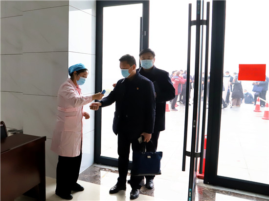 在會(huì)場之外,該縣疫情防控指揮部設(shè)立多重保障守護(hù)大會(huì)安全。在疫情防控常態(tài)化所有人員必須戴口罩的情況下,首先通過第一重保障,即通過手機(jī)掃描“通信大數(shù)據(jù)行程卡”,呈“綠碼”方可走向會(huì)場大門;進(jìn)入會(huì)場大門時(shí),排隊(duì)進(jìn)行體溫監(jiān)測,體溫顯示正常方可進(jìn)入。與此同時(shí),會(huì)場座位按照隔位入座的形式,保障人與人之間的距離超過50厘米。在多重保障的守護(hù)下,確保大會(huì)順利安全舉行。③5